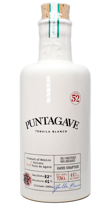 PUNTAGAVE TEQUILA BLANCO is crafted using a special process, which involves carefully selecting and oxygenating the agave, to achieve a harmonious blend of smooth and fruity flavors. Expertly crafted by renowned Maestro Tequilero Gillermo Barroso, this 82 proof tequila underwent 52 iterations to reach its unique and refined taste for the most discerning palates. Tasting Notes: Crystal clear and impeccably crisp, with alluring green fruit scents, this tequila boasts a refreshing and balanced palate of green apple and tangy citrus. The finish is surprisingly long and clean, with lingering notes of fresh agave and subtle hints of white pepper.